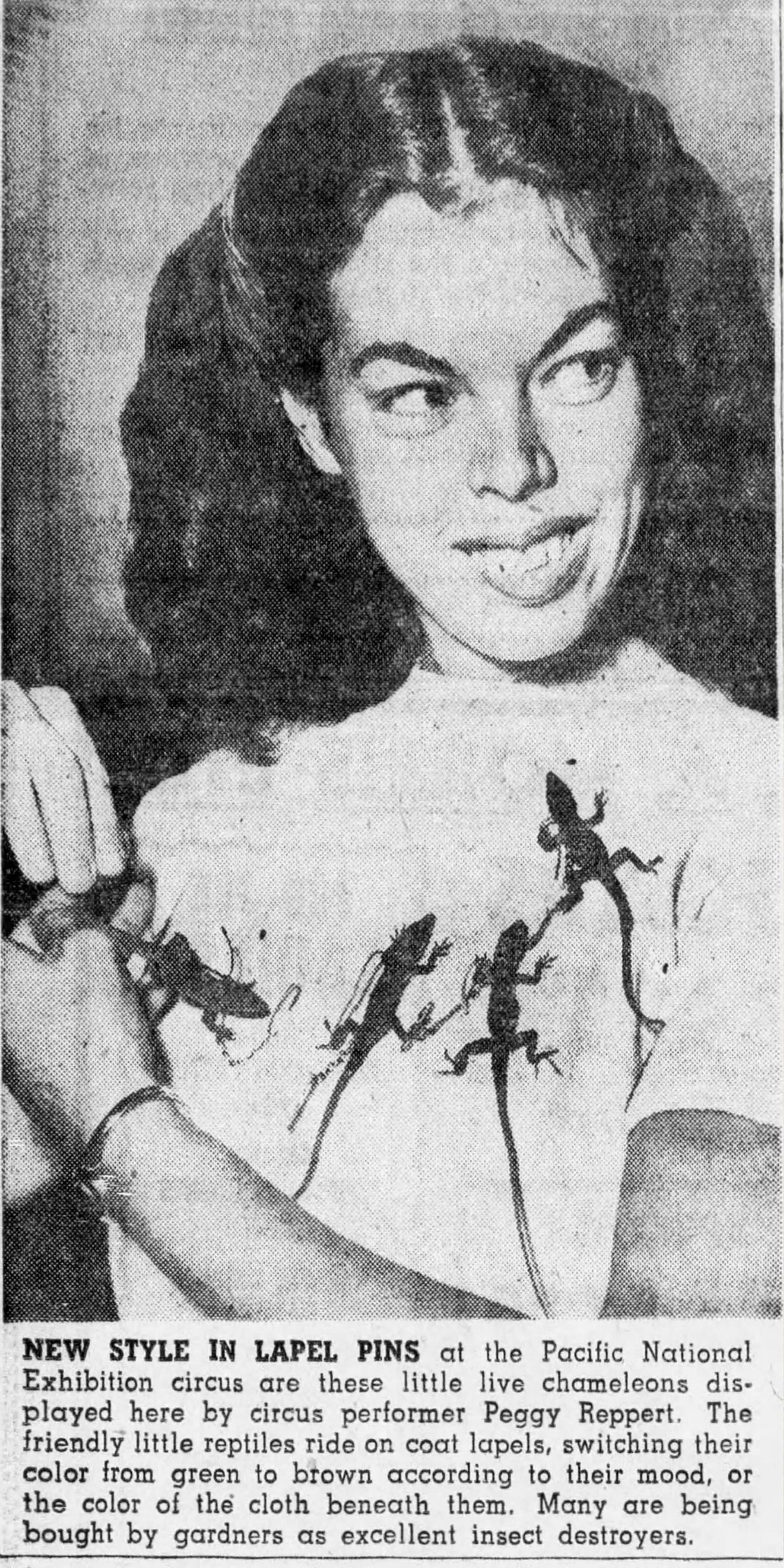 In the summers, the circus would come to Yankton, South Dakota, across the border from their little town in Nebraska. My client recalled all the things we think about with circuses, the trapeze, the clowns in a tiny car and cotton candy, but what she said was her favorite thing was something I’d never heard of: A vendor would walk around the audience’s seats selling live chameleons for 50 cents. He’d be wearing the chameleons safety-pinned to his shirt. The pin went through collars around the chameleons’ necks, and the chameleons’ skins would be the color of his shirt. The collars and pins came with the chameleons so that people could wear them as living jewelry!